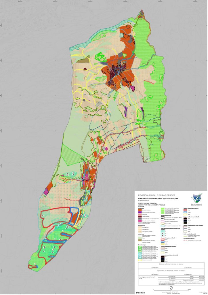 Procédure des plans d’affectation de zone et de règlement communal des constructions et des zones L’entrée en force de la nouvelle loi sur l’aménagement du territoire (LAT) en 2014 a pour conséquence le redimensionnement des zones à bâtir de la commune de Vex. Ceci...